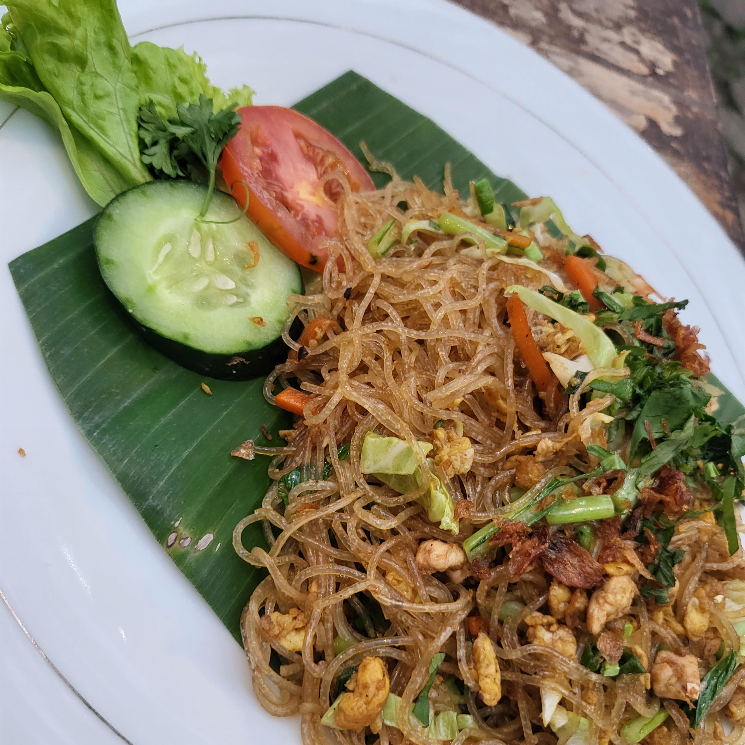 비훈고랭(Bihun Goreng)은 미고랭과 비슷하게 볶음국수인데 미고랭보다는 면이 얇고 투명하다. 쌀로 만든 면이라고 하던데 식감은 우리나라로 치면 당면과 비슷? 잡채인데 조금 더 짭짤한 맛? 예전에 발리 왔을 때 미고랭 시켰는데 비훈고랭으로 잘못 나와서 그 때 처음 먹어보게 됐는데 미고랭과는 또 다른 매력이 있다.
