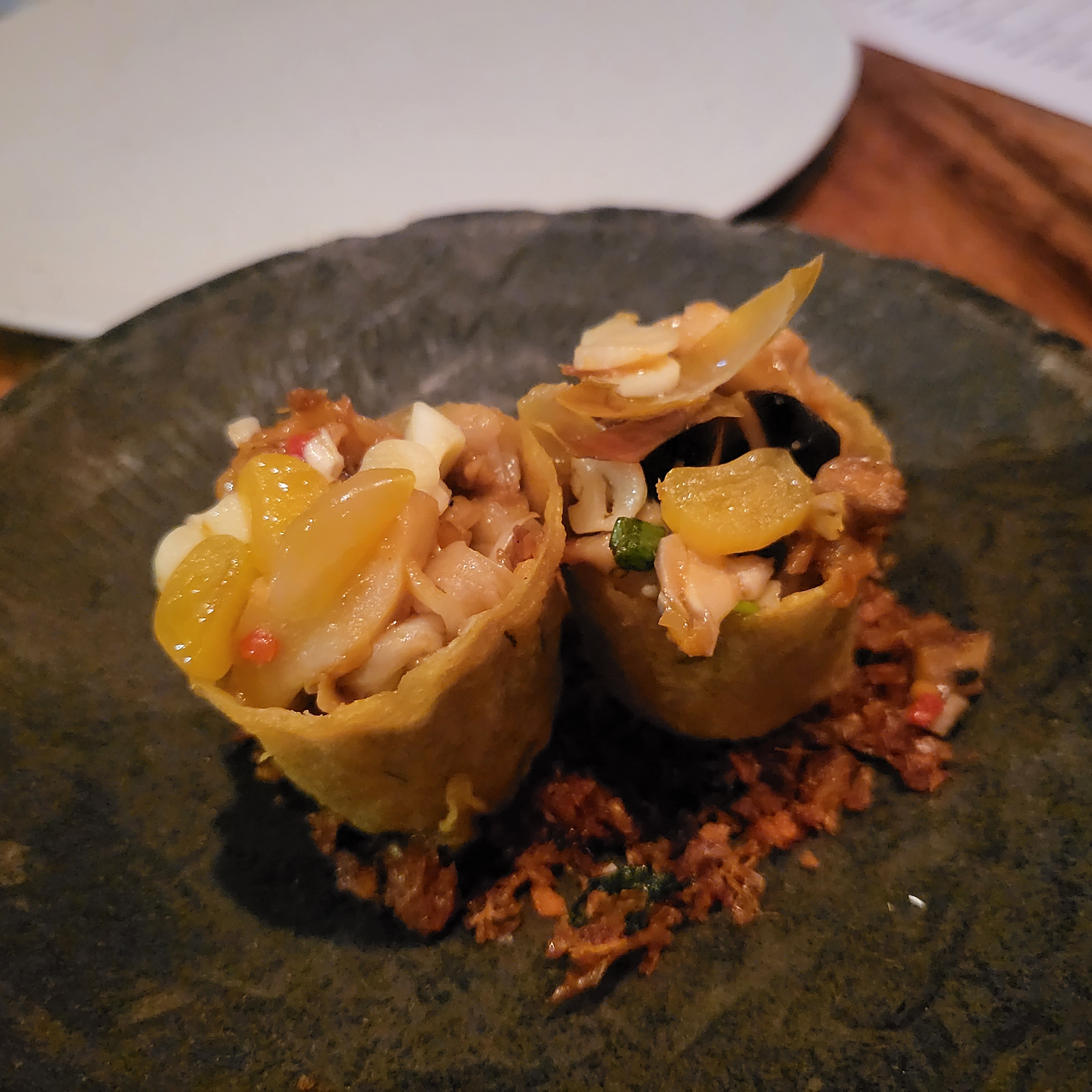 사실 내가 낯선 음식은 잘 먹지 않는데 이건 진짜 넘 맛있어서 정말 정체를 알 수 없는 부위만 친구 주고 싹싹 긁어먹었다. 특히 저 삼겹살 같이 생긴 부위가 진짜 엄청난 맛인데 껍질 부분이 튀겨져 있어서 바삭바삭하고 맛있었다.
